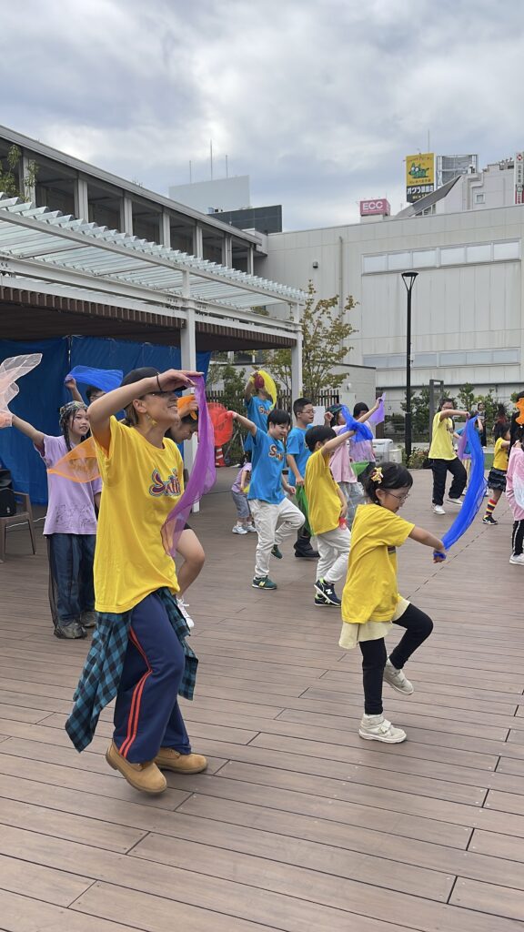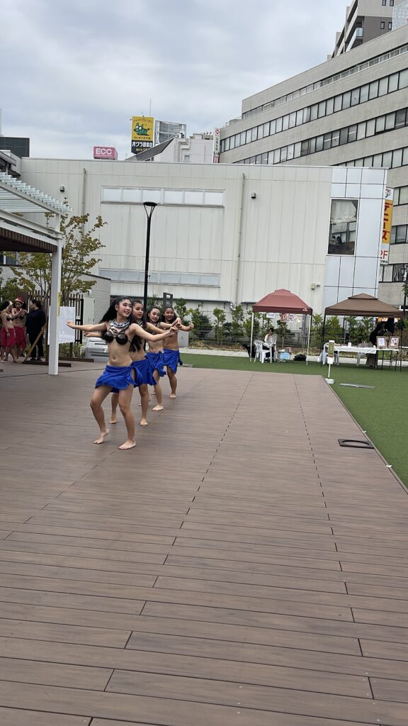 そんな中、今回は外の広場の運営を任されキッチンカーやマルシェの出店、イベントの企画をさせて頂きました。イベントではキッズダンス3グループに声をかけさせて頂きタヒチダンス・ガールズダンス・障害者の子供たちが出演してくれました